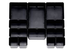 - Set bestehend aus: 4x Einsatzboxen 1x1 H63 (52 mm x 52 mm x 63 mm); 5x Einsatzboxen 1x2 H63 (104 mm x 52 mm x 63 mm); 2x Einsatzboxen 2x2 H63 (104 mm x 104 mm x 63 mm); 1x Einsatzbox 2x3 H63 (157 mm x 104 mm x 63 mm)
