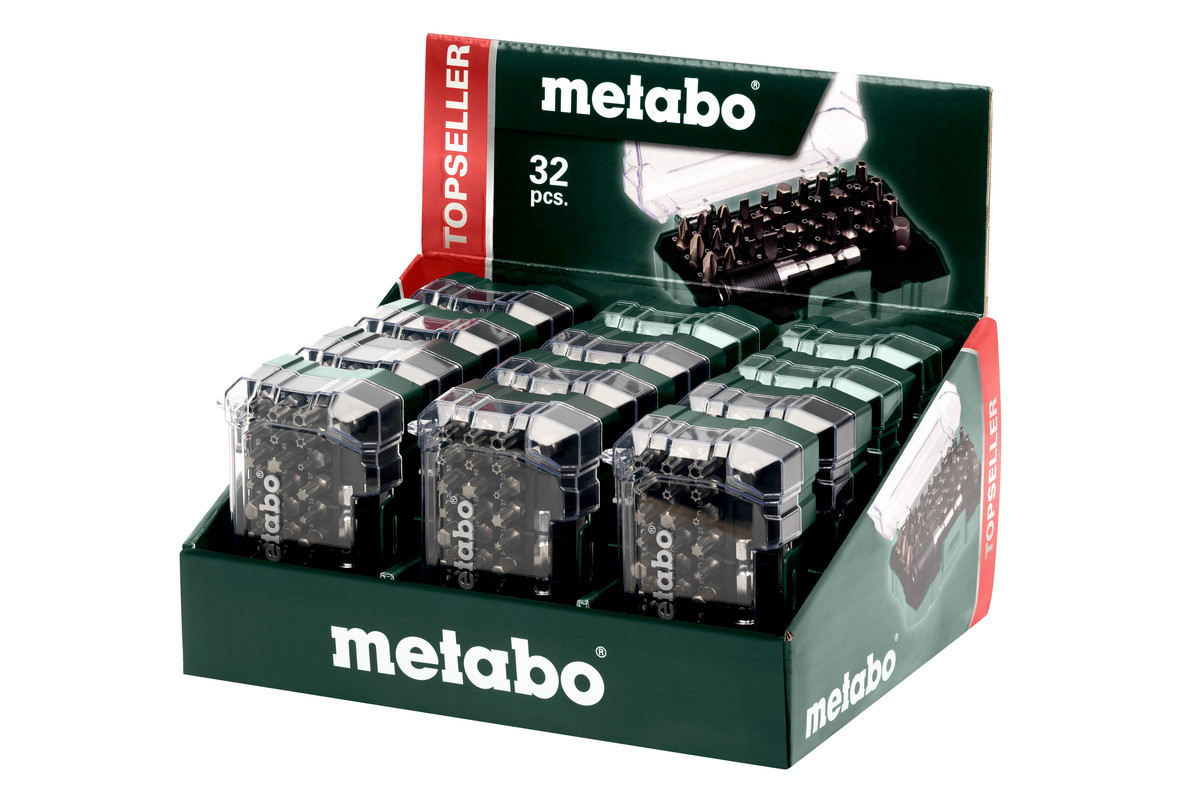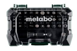 • Bits aus Chrom-Vanadium-Stahl (S2-Qualität); Magnetischer Bithalter; Mit Adapter für Steckschlüsseleinsätze (Stecknussadapter); Hochwertige, robuste Box im speziellen Metabo-Design