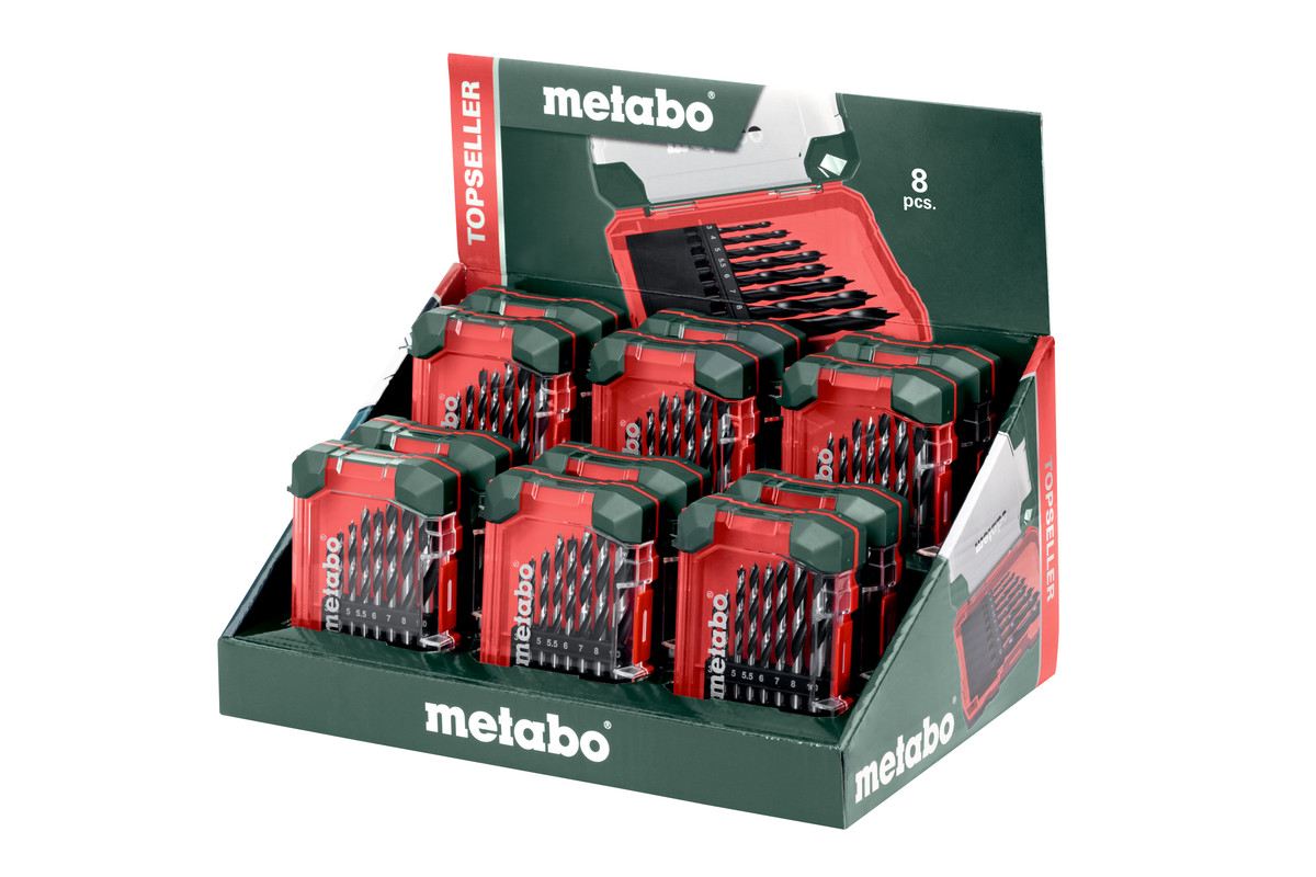 • 8-teilig, in hochwertiger, robuster Kunststoffkassette im speziellen Metabo-Design mit ausziehbarem Euroloch-Aufhänger; Holzspiralbohrer aus hochwertigem Chrom-Vanadium-Stahl, gehärtet, mit Zentrierspitze für den Einsatz in Hart- und Weichholz, Sperrholz, Spanplatten usw