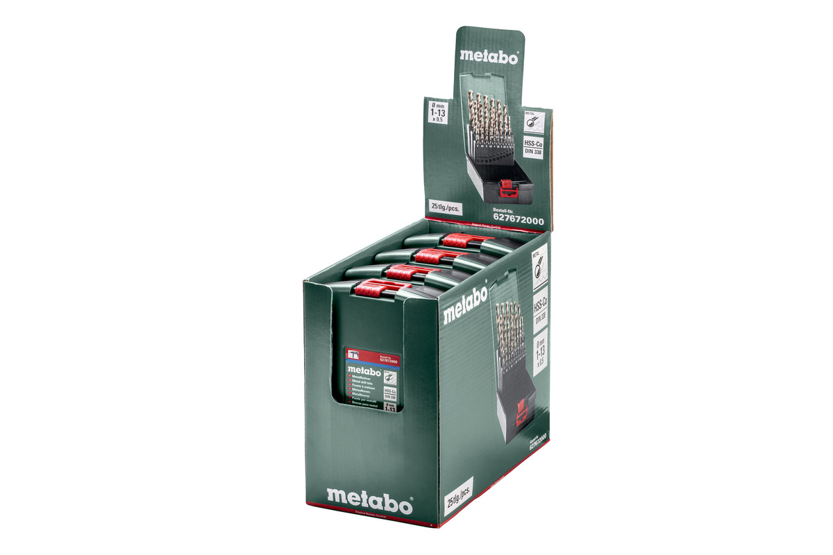 • HSS-CO- Metallbohrer, Kobaltlegierte Ausführung, geschliffen, zylindrisch, Typ N, 135° Kreuzanschliff, Oberfläche bronze, 25-teilig, in Kunststoffkassette