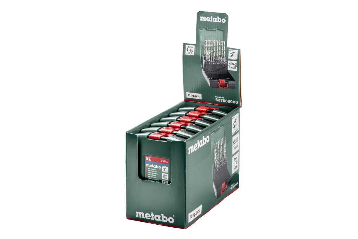 • HSS-G Metallbohrer, geschliffene Ausführung, zylindrisch, DIN 338, Typ N, 135° Kreuzanschliff, Oberfläche blank, 19-teilig, in Kunststoffkassette