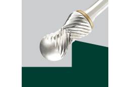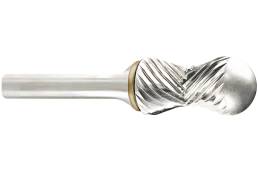 - Fraise quart-de-cercle unique avec structure à courbes spéciale. Le système de guidage spécial empêche la pièce de glisser. Convient donc parfaitement pour les rayons fins sur des coins/bords tranchants et pour un bon contrôle sur les coins tranchants. La géométrie spéciale des rainures (dents standard convergentes au centre de la fraise) permet un fraisage fin sur toutes les surfaces et un grand volume d'enlèvement de copeaux avec une durée d'utilisation élevée. Le bout sphérique lisse aide à guider la fraise et évite d'endommager la surface. Spécialement conçue pour réaliser des rayons sur des matériaux durs comme l'acier, l'acier inoxydable, la fonte, le titane, le bronze, le cuivre, le laiton, etc.