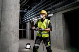 - Projecteur de chantier sans fil compact de 10 000 lumens pour un éclairage de travail large et homogène avec peu d'ombres