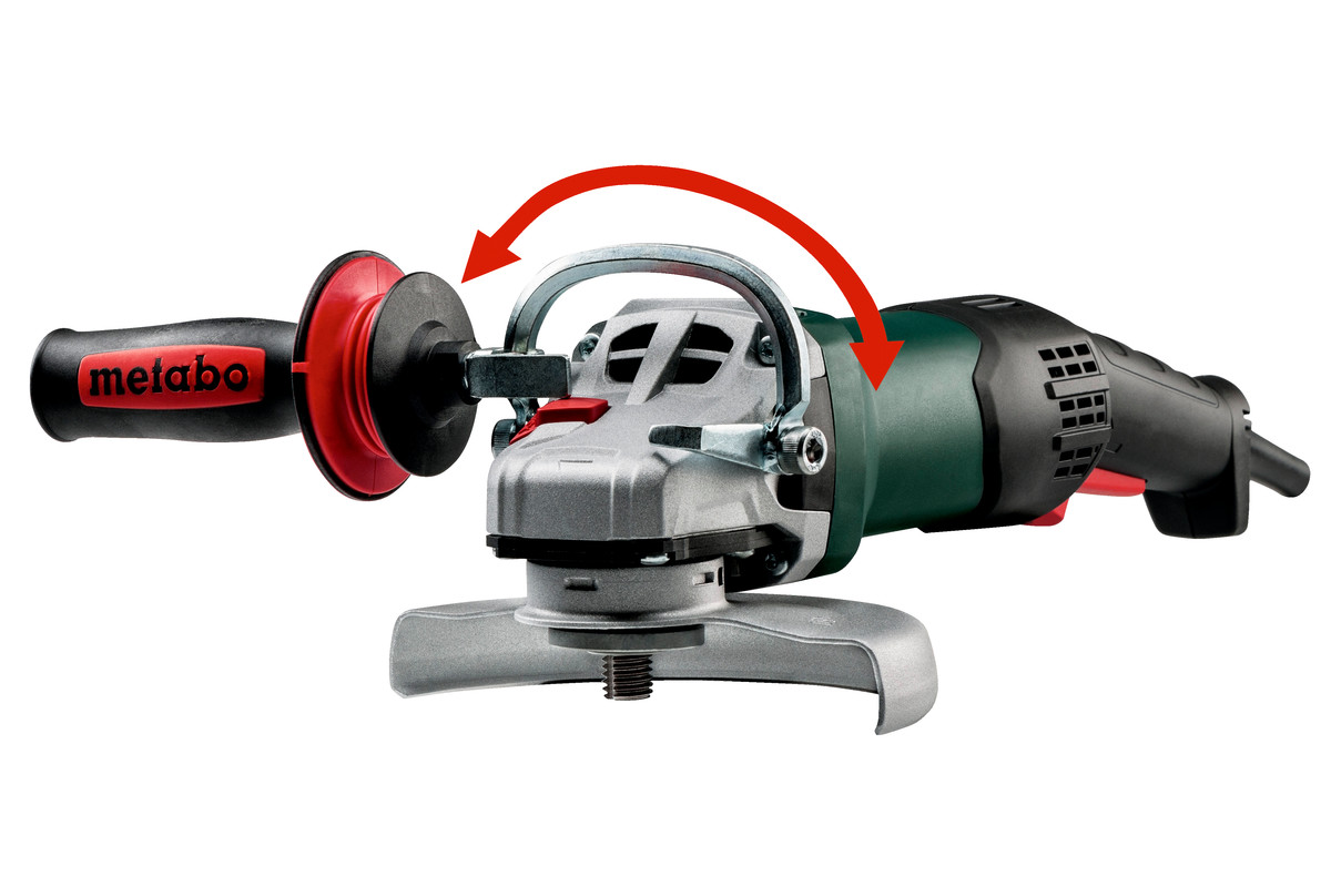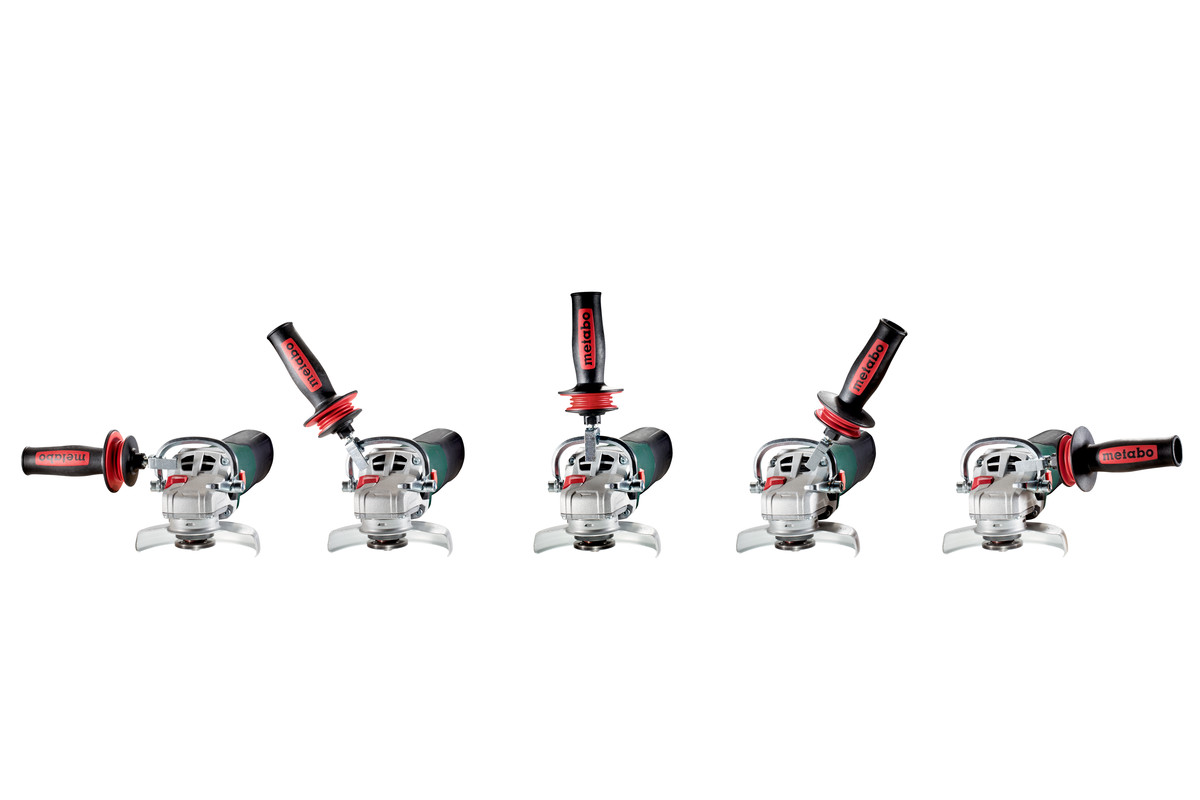 - La staffa a 180° permette di regolare in modo personalizzato e continuo la seconda posizione di impugnatura, consentendo un lavoro ergonomico e poco affaticante, ad es. per la troncatura o per i mancini